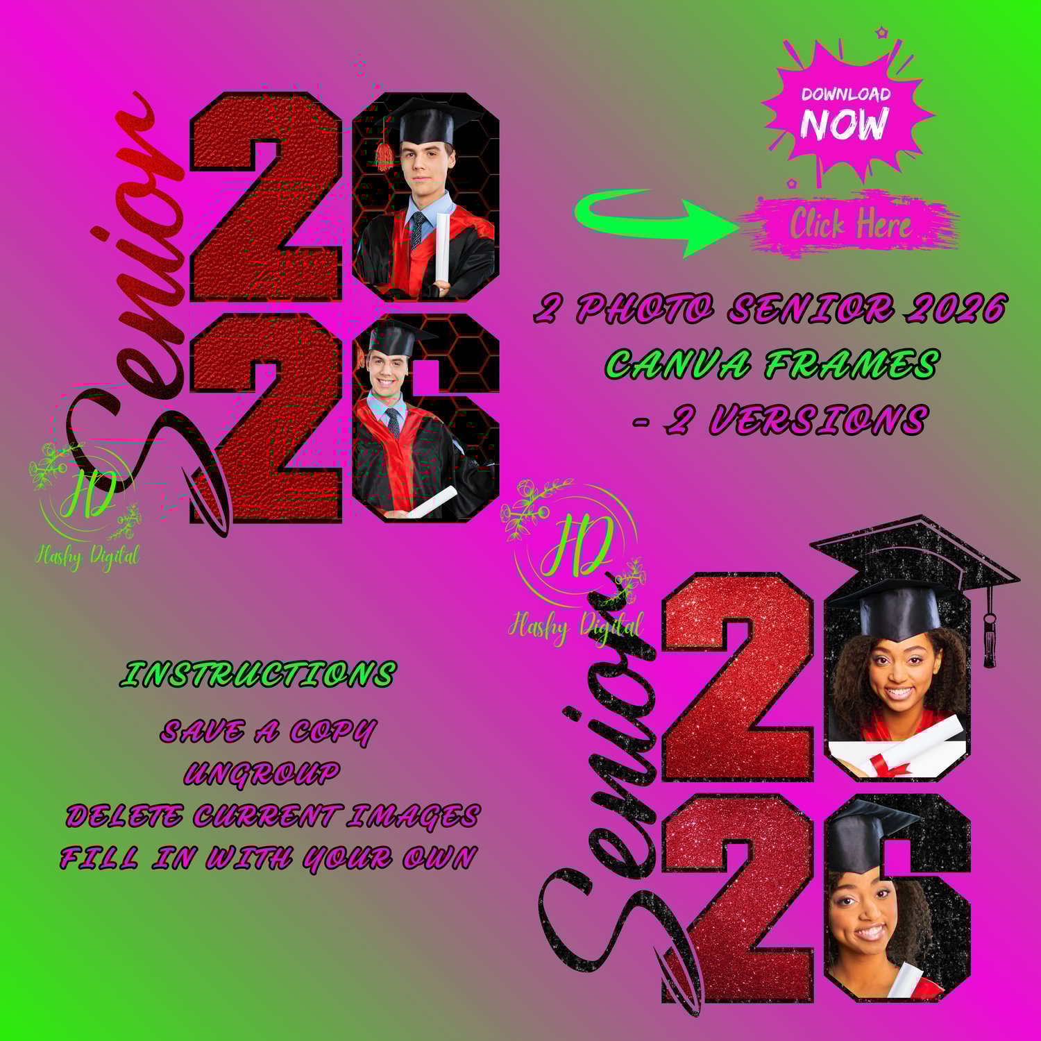 2026 SENIOR 2 PHOTO CANVA FRAMES 2 VERSION BUNDLE